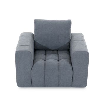 ZESTAW NIMBUS to stylowa meble wykonane w nowoczesnym stylu. Wykończone zostały z dbałością o najmniejsze detale, tak aby zadowolić najbardziej wymagających klientów. Ozdobiony wyraźnymi przeszyciami i pikami, nadają kompletowi szyku i elegancji. Fotel został wykonany na wysokoelastycznej piance typu HR. Całość wieńczy delikatna, przyjemna w dotyku tkanina welurowa, która dodaje fotelowi elegancji. Zastosowane tkaniny posiadają ochronną warstwę, dzięki której ma ograniczone wchłanianie płynów. W przypadku rozlania płynu na mebel wystarczy przetrzeć suchą ściereczką, aby przywrócić jej świetny wygląd. Posiada wygodne podłokietniki oraz tapicerowany tył, przez co może stać w dowolnej części pomieszczenia.