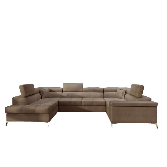 Bryła narożnika zaprojektowana została w taki sposób, aby zapewnić komfortowy, wygodny wypoczynek – narożnik wyposażony został w regulowane zagłówki i szerokie podłokietniki. Głębokie siedzisko i szeroka otomana.