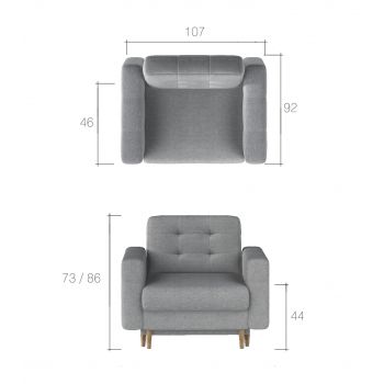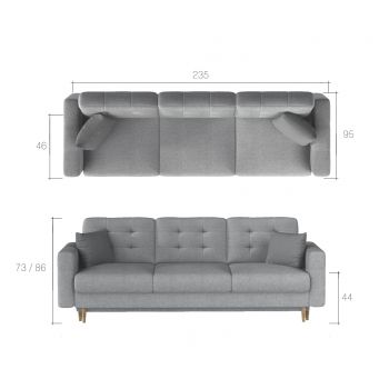 Sofa rozkłada się, przez co może służyć również jako łóżko. Jej dodatkowym atutem jest to, że została wykonana na  sprężyny falistej i elastycznej pianki T3 przez co zapewnia wygodną powierzchnię do spania. Kanapa posiada również pojemnik na pościel, który ułatwi utrzymanie porządku, gdy kanapa jest złożona.