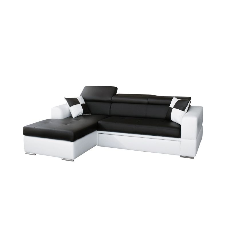 Czarno-biały narożnik AMIX to wyjątkowy i nowoczesny narożnik do przestronnych pomieszczeń. Zestawienie ze sobą czerni i bieli sprawia, że narożnik jest bardzo elegancki i nadaje się do pomieszczeń luksusowych. AMIX ma jeden duży pojemnik na pościel lub inne rzeczy użytkowe. Wymiary narożnika to 260x165x95 centymetrów, a powierzchnia do spania to 120x210 centymetrów. Ten wyjątkowy narożnik skonstruowany został z drewna, płyty laminowanej, sprężyn falista i elastycznej pianki odpornej na wgniecenia. Powierzchnia siedziska jest pikowana, co nadaje narożnikowi wyjątkowego designu.