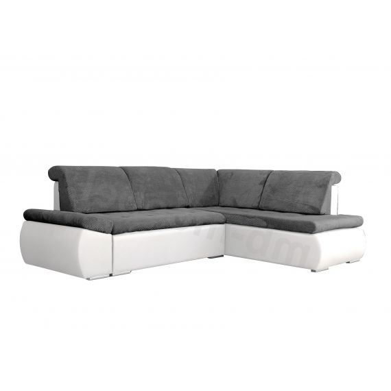 Narożnik Tom to połączenie nowoczesnego designu z wysoką jakością tkaniny oraz ekoskóry. Narożnik został zaprojektowany tak, aby zadowolić nawet najbardziej wymagającego klienta. Posiada nowoczesny wygląd oraz bogatą gamę kolorów. Narożnik dodatkowo zdobi pikowane siedzisko. W parze z eleganckim wyglądem tego narożnika idzie jego funkcjonalność. Narożnik jest rozkładany, posiada funkcję spania, która jest otwierana za pomocą wygodnego automatu, a więc nie rysuje podłogi. Dodatkowo narożnik posiada pojemnik na pościel, który pełni praktyczną funkcję schowka. Narożnik jest wykonany na sprężynie falistej, która zapewnia w nim komfortowe siedzisko i wygodną powierzchnię do spania.