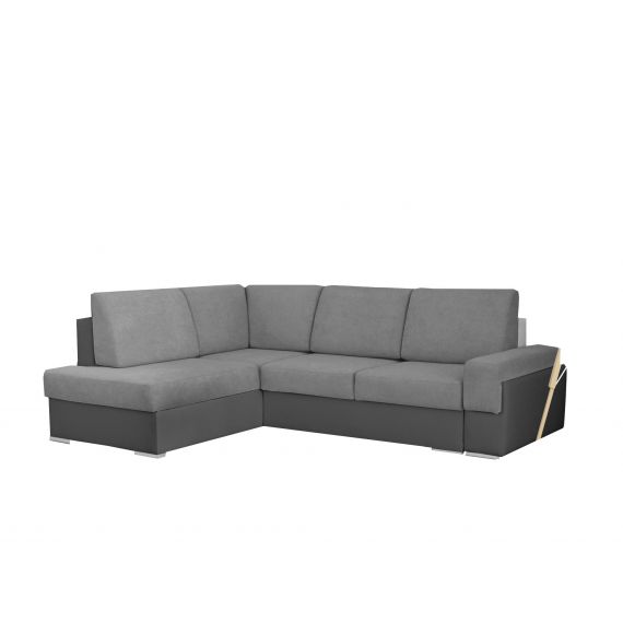 Urządzasz przestrzeń do odpoczynku w salonie? Nie zapomnij o wygodnym siedzisku! Ten interesujący pod względem formy mebel pozwoli Ci zagospodarować miejsce do relaksu w mniejszym salonie. Narożnik rewelacyjnie sprawdzi się w kawalerkach, ponieważ ma dodatkową funkcję spania i dwa duże pojemniki do przechowywania pościeli. Praktyczny mebel do salonu został wykonany z wytrzymałych materiałów, czyli drewna i płyty laminowanej, a za wygodę użytkowania odpowiada sprężyna falista.