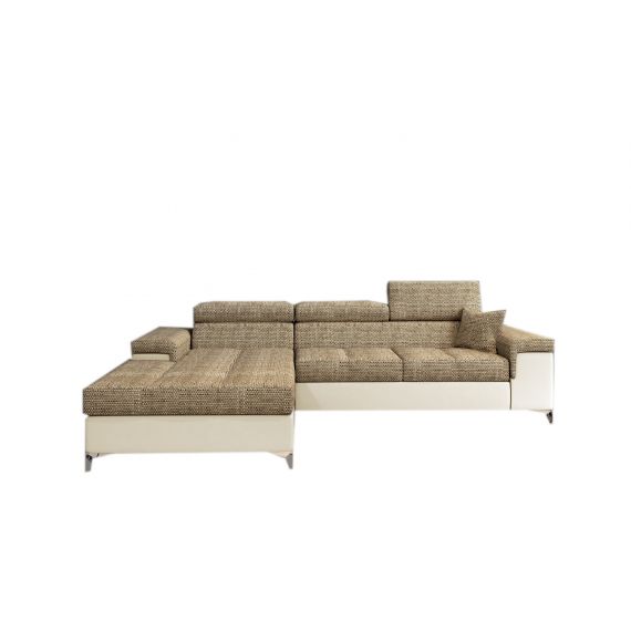 Narożnik z powodzeniem może służyć jako łózko, sprawdzi się również w każdych stylowych pomieszczeniach. Po złożeniu zapewnia komfortowe miejsce do siedzenia, natomiast po rozłożeniu świetnie sprawdza się jej funkcja spania. Została wykonana NA SPRĘŻYNACH falistych co jest jej dodatkowym atutem, ponad to w kanapie została zastosowana wysoko elastyczna pianka , dzięki czemu jej użytkowanie jest niezwykle komfortowe. Narożnik posiada wysokie nóżki. Jej dodatkową zaletą jest to, że posiada wygodne podłokietniki. Kanapa posiada tył obity materiałem, przez co może stać w dowolnej części pomieszczenia. produkt wykonany w całości w Polsce. Konstrukcja NAROŻNIKA JEST z litego drewna i płyty laminowanej, zapewnia wytrzymałość i trwałość mebla. Funkcja spania rozkładana za pomocą wygodnego automatu dzięki temu w rozłożenie sofy nie trzeba użyć dużo siły. Pod siedziskiem znajduje się dość spory pojemnik na pościel, który pomoże w utrzymaniu porządku, kiedy rogówka jest złożona.