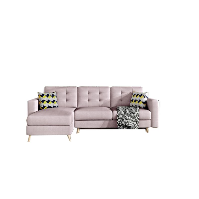 Narożnik z powodzeniem może służyć jako łózko, sprawdzi się również w niewielkich pomieszczeniach. Po złożeniu zapewnia komfortowe miejsce do siedzenia, natomiast po rozłożeniu świetnie sprawdza się jej funkcja spania. Została wykonana NA SPRĘŻYNACH falistych co jest jej dodatkowym atutem, ponad to w kanapie została zastosowana wysoko elastyczna pianka typu T 30, dzięki czemu jej użytkowanie jest niezwykle komfortowe. Narożnik posiada proste nóżki w kolorze drewna. Jej dodatkową zaletą jest to, że posiada wygodne podłokietniki. Kanapa posiada tył obity materiałem, przez co może stać w dowolnej części pomieszczenia. produkt wykonany w całości w Polsce. Konstrukcja NAROŻNIKA JEST z litego drewna i płyty laminowanej, zapewnia wytrzymałość i trwałość mebla. Funkcja spania rozkładana za pomocą wygodnego automatu dzięki temu w rozłożenie sofy nie trzeba użyć dużo siły. Pod siedziskiem znajduje się dość spory pojemnik na pościel, który pomoże w utrzymaniu porządku, kiedy rogówka jest złożona.