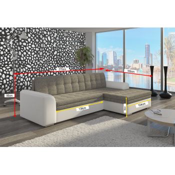 Ciekawym rozwiązaniem do Twojego mieszkania jest elegancki narożnik NORTI w modnych kolorach. Aby ułatwić codzienne rozkładanie, mebel wyposażono w wygodny automat delphin, a także pojemny pojemnik na pościel. Powierzchnia spania wynosi 126x200 centymetrów, czyli wygodnie odpoczywać mogą dwie osoby. Wysoki standard wykonania zapewnia stabilna konstrukcja z drewna i płyty laminowanej. Ponadto narożnik wykonany został na sprężynie falistej i wykończony wysokiej jakości pianką. Dla Twojej wygody istnieje możliwość montażu zarówno na prawą, jak i na lewą stronę, wystarczy określić preferencje przy składaniu zamówienia. Po złożeniu mebel ma wymiary 270x165x80 centymetry, doskonale sprawdzi się nawet w mniejszym pomieszczeniu.