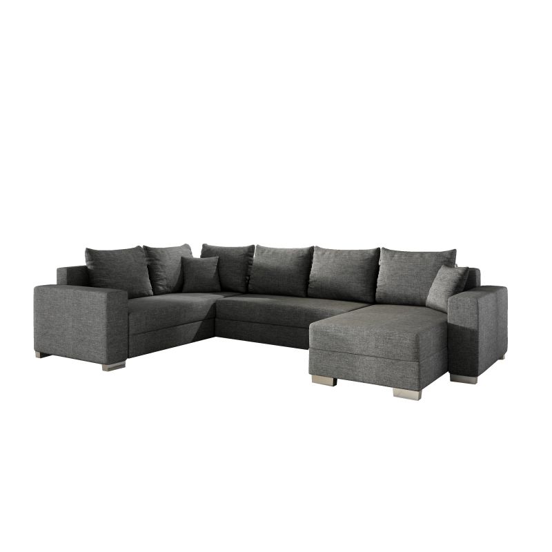 Oparcia zostały wyposażone w dodatkowe obszerne poduszki, dzięki którym relaks w domowym zaciszu dodatkowo zyskuje na jakości. Dodatek w postaci dwóch mniejszych poduszek dekoracyjnych nawiązujących kolorystycznie do oparć, podłokietników i dolnej części mebla.Na funkcjonalność mebla wpływa także możliwość rozłożenia narożnika do pozycji spania. Wysuwany dół i przewracane oparcie umożliwiają szybką i niewymagającą użycia siły zmianę z mebla dziennego na łóżko o wymiarach 285x130cm. Dodatkowym atutem jest fakt, iż narożnik został wyposażony w dwa pojemniki na pościel.
