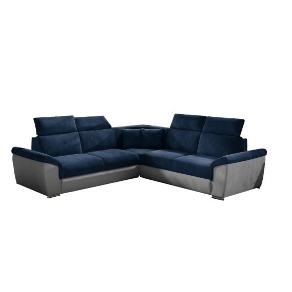 Jeśli szukasz mebla, który nada przestrzeni Twojego salonu nowego, lepszego wyglądu, zadbaj o to, aby prezentował się on nieskazitelnie, ale był również wygodny. Dzięki temu, że do jego produkcji zostały użyte materiały najlepszej klasy, posłuży Ci on przez wiele lat. Jest to wielofunkcyjny narożnik, który można stosować jako kanapę, bądź łóżko, ponieważ posiada on funkcję spania. Wykonany jest na sprężynie falistej która jest komfortowa i trwała wykończeniem jest wysokiej jakości pianka. Narożnik zapewnia wyjątkowy poziom wygody podczas relaksu w domowym zaciszu. Prosta, klasyczna forma została przełamana nowoczesnymi elementami w postaci szerokich, skośnych podłokietników, wysokich oparć wyposażonych w cztery regulowane zagłówki, dekoracyjne poduszki oraz płaską rogówkę mebla, która może pełnić funkcję podręcznej półki.