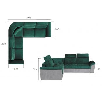 Jeśli szukasz mebla, który nada przestrzeni Twojego salonu nowego, lepszego wyglądu, zadbaj o to, aby prezentował się on nieskazitelnie, ale był również wygodny. Dzięki temu, że do jego produkcji zostały użyte materiały najlepszej klasy, posłuży Ci on przez wiele lat. Jest to wielofunkcyjny narożnik, który można stosować jako kanapę, bądź łóżko, ponieważ posiada on funkcję spania. Wykonany jest na sprężynie falistej która jest komfortowa i trwała wykończeniem jest wysokiej jakości pianka. Narożnik zapewnia wyjątkowy poziom wygody podczas relaksu w domowym zaciszu. Prosta, klasyczna forma została przełamana nowoczesnymi elementami w postaci szerokich, skośnych podłokietników, wysokich oparć wyposażonych w cztery regulowane zagłówki, dekoracyjne poduszki oraz płaską rogówkę mebla, która może pełnić funkcję podręcznej półki.
