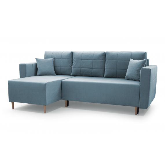 Narożnik Santos to gorąca nowość w naszej ofercie. Elegancki wygląd i komfort użytkowania sprawia, że doskonale wpasuje się w Państwa wnętrze. Rogówka została wykonana z wysokiej jakości materiałów, z dbałością o najmniejsze detale, tak aby zadowolić najbardziej wymagających klientów. Narożnik posiada komplecie trzy duże poduszki, które tworzą wygodne oparcie oraz dwie małe, dekoracyjne. Dzięki dużej i wygodnej funkcji spania, narożnik z powodzeniem może służyć jako łóżko dla gości.
