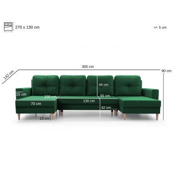 Narożnik Carl zapewni komfort wypoczynku całej rodzinie, jednocześnie doskonale uzupełni aranżację salonu. W siedzisku zastosowano piankę wysokoelastyczną, całość pokryta pluszową tkaniną Manila. Funkcja spania Typu DL to szybki, prosty i wygodny sposób rozkładania. Aby rozłożyć narożnik do funkcji spania wyciągamy siedzisko do przodu i kładziemy oparcie. Pod siedziskiem umieszczony został pojemnik na pościel, dzięki któremu będziemy mogli schować dodatkowe koce czy też poduszki bez zajmowania przestrzeni w szafach. Po rozłożeniu powierzchnia spania wynosi 200x130 cm. W narożniku zastosowano ozdobne, drewniane nóżki, o wysokości 13cm, które dodają lekkości całej bryle. W komplecie narożnika Carl znajdują się 3 duże, dekoracyjne poduszki oparciowe. Dodatkowo elegancji dodają pojedyncze pikowania na poduszkach oraz podłokietnikach. Tapicerowany tył mebla pozwala na ustawienie go w dowolnej przestrzeni pomieszczenia, niekoniecznie pod ścianą.