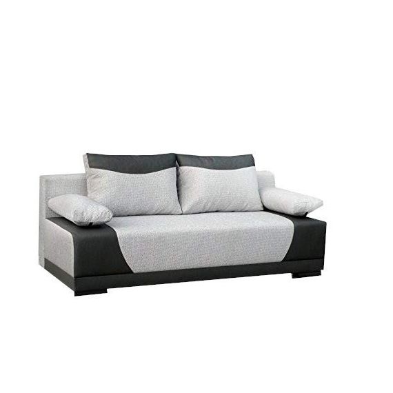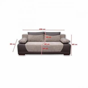SofaWioletta mebel został obity tkaniną oraz ciemną ekoskórą co dodaje jej charakteru. Niewielka kanapa o szerokości 195 centymetrów bazuje na wysokiej jakości konstrukcji z drewna i płyty laminowanej. Siedzisko stworzono w oparciu dobrze amortyzującą piankę, która pokrywa sprężyny faliste. Sofa Wioletta posiada opcję rozkładania. Po rozłożeniu tworzy powierzchnię spania o wymiarach 140 na 195 centymetrów.