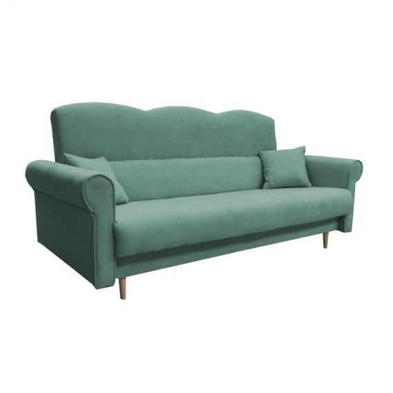 Dodatkową zaletą kanapy jest to, że po rozłożeniu tworzy dużą i wygodną powierzchnię spania 133 cm x183 cm. Sofa jest rozkładana za pomocą automatu, co sprawia, że w rozłożenie sofy nie trzeba wkładać dużo siły. Pod siedziskiem znajduje się dość spory pojemnik na pościel, który pomoże w utrzymaniu porządku, kiedy sofa jest złożona.