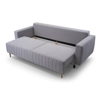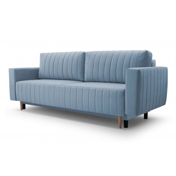 Sofa RIVEN to gorąca nowość w naszym asortymencie. Ozdobnym przeszycia na elementach kanapy i poduchach oparcia dodają jej elegancji i oryginalności! W siedzisku zastosowana została wysokoelastyczna pianka HR oraz sprężyny faliste, dzięki którym komfort i wygoda użytkowania kanapy utrzymana jest na wysokim poziomie. Kanapa posiada powierzchnię spania 195x133 cm oraz pojemnik na pościel.