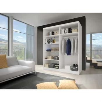 Szafa przesuwna Kira 1 o białym korpusie i frontach w wybarwieniu dąb sonoma to produkt, który powstał w wymiarach 150x200x61 centymetrów. W całości wykonana z płyty laminowanej o grubości 16 milimetrów została zabezpieczona obrzeżem ABS tak, by użytkownik nie zrobił sobie krzywdy podczas montażu czy codziennego użytkowania. Dwoje drzwi przesuwnych zostało wzbogaconych o solidny system oparty na aluminiowych prowadnicach i rolkach na łożyskach, a w celu poprawienia wygody do zestawu dołączyliśmy aluminiowe uchwyty. Duże lustro przeznaczone do montażu na drzwiach pozwoli Ci na wykonanie szybkiego makijażu bez potrzeby wychodzenia z pokoju. Wnętrze prezentowanej szafy wyposażone jest w rząd półek oraz praktyczny drążek, które pozwolą na zachowanie pożądanego ładu i odpowiednie rozmieszczenie ubrań i przedmiotów.