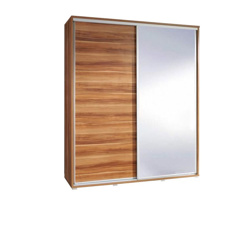 Meble powinny być nie tylko praktyczne, ale również stanowić ozdobę pomieszczenia, ponieważ są głównymi elementami wyposażenia każdego wnętrza. Szafa przesuwna to model o nieszablonowym wykonaniu, którego największą ozdobą jest lustro. Przede wszystkim jednak warto wziąć go pod uwagę, urządzając sypialnię czy salon w stylu skandynawskim. Szafa przesuwna jest bardzo przestronna. Model podzielono na dwie części, w jednej znajdują się mniejsze półki, a w drugiej wnęka z drążkiem. Szafa ta to model przeznaczony dla osób, które poszukują wyjątkowych rozwiązań do swojego wnętrza. Uniwersalny kolor doskonale wkomponuje się zarówno we wnętrza w stylu klasycznym, jak i nowoczesnym. Szafa jest wykonana z wysokiej jakości płyt laminowanych, które dają gwarancję komfortowego i bezpiecznego użytkowania przez długie lata. Jest to bardzo przestronny model, który bez problemu pomieści wszystkie Twoje ubrania i dodatki. We wnętrzu szafy znajduje się drążek do wieszania ubrań oraz pojemne półki. Dodatkowo fronty szafy pokryte są lustrem które dodają charakteru.