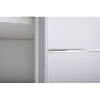 Dwudrzwiowa szafa przesuwna z funkcjonalnym ułożeniem drążka i półek wewnątrz szafy. Szafa jest przeznaczona dla ludzi ceniących wygodę, drzwi przesuwne zapewniają wygodny dostęp do wnętrza szafy i...
