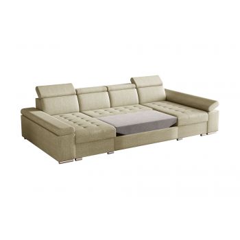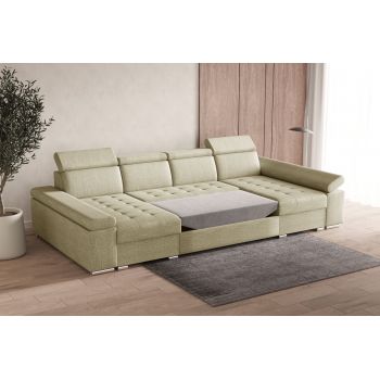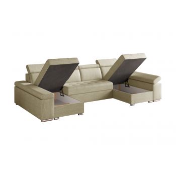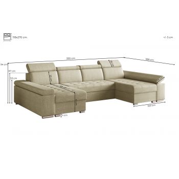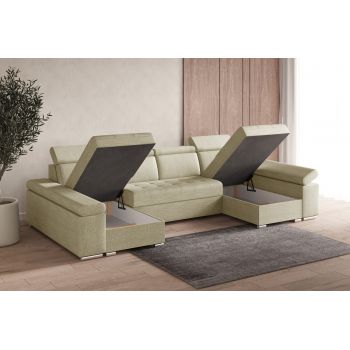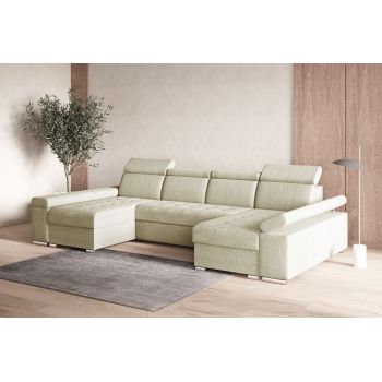Narożnik LUKA U łączy nowoczesny design z innowacyjnymi funkcjami i najwyższym komfortem. Dzięki 4 regulowanym zagłówkom i 2 dostosowywanym podłokietnikom oferuje możliwość indywidualnego dopasowania pozycji siedzenia i leżenia. Wysoka jakość wykonania, dekoracyjne pikowanie oraz eleganckie srebrne nóżki sprawiają, że stanowi stylowy akcent w każdym salonie.